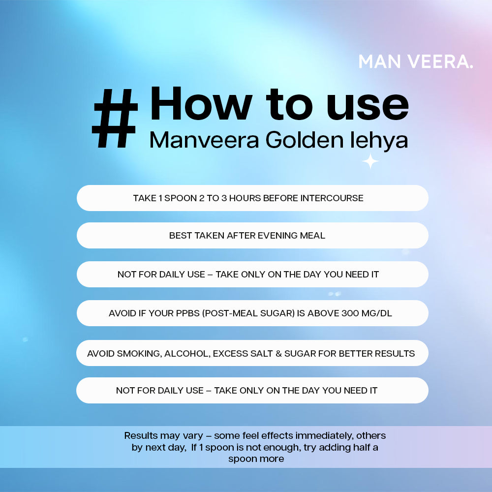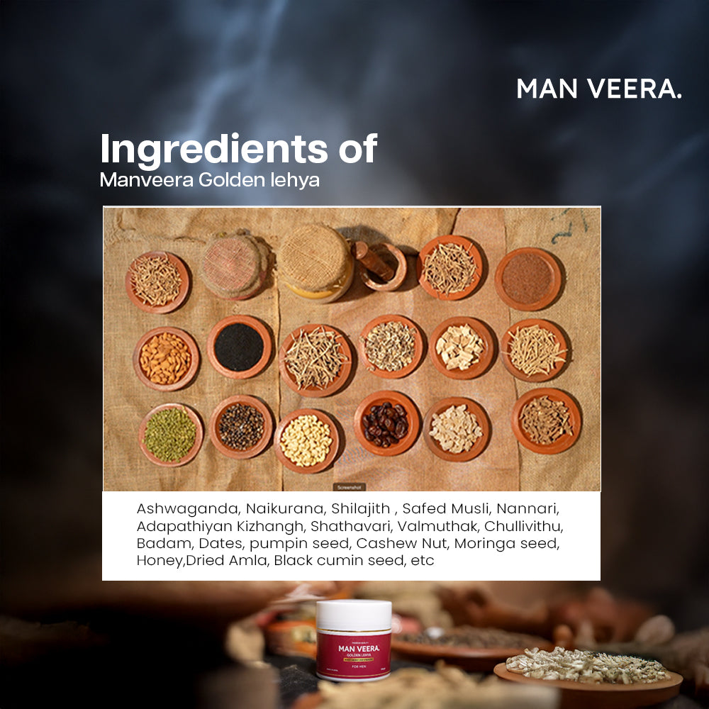 Manveera Lehya is a herbal lehya which is designed to help men for stamina, strength and vitality.A powerful herbal blend made especially for men. Made from natural ingredients like Ashwaganda, Naikurana,Kali Musli, Safed Musli, Shilajith, Dates, Badam etc. It helps to improve energy, performance, and confidence without any chemicals.